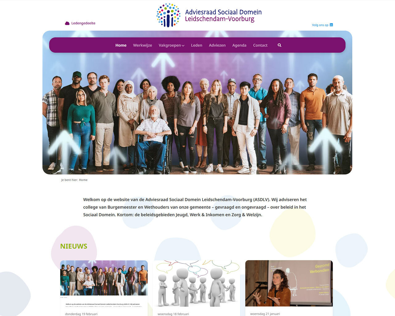 De Adviesraad Sociaal Domein Leidschendam-Voorburg (ASDLV) adviseert het college van Burgemeester en Wethouders over het beleid binnen het sociaal domein. Wij doen dit zowel gevraagd als ongevraagd.